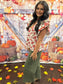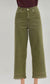 High waist Olive colored pants featuring floral embroidered border hem. Classic button fly-front zipper closure. Classic jean pockets. Unlined. Woven. Non-sheer. Lightweight.